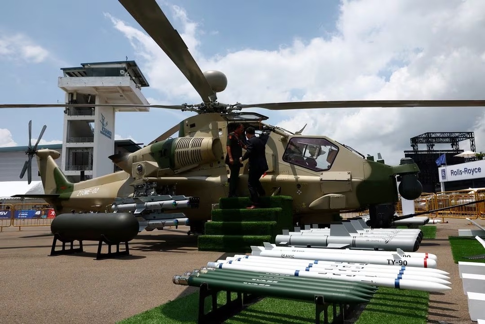 The helicopter, which has a chin-mounted chain gun and was displayed alongside several types of compatible missiles and rockets, sat not far from a Boeing AH-64 Apache attack helicopter, operated by the Singaporean military and those of many other U.S. allies.