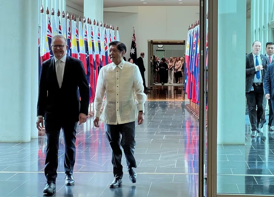 Australian Prime Minister Anthony Albanese walks with Philippine President Ferdinand Marcos Jr at the Parliament House in Canberra, Australia, February 29, 2024. REUTERS/Kirsty Needham