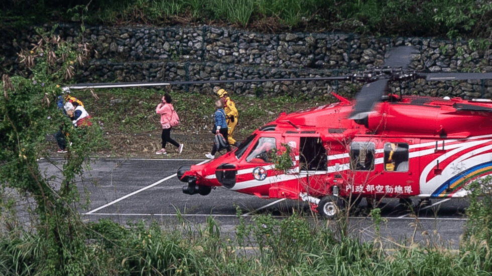 Taiwan rescue helicopters flew sorties Saturday to pluck tourists to safety after a massive earthquake cut off roads and blocked tunnels, leaving hundreds stranded for days in the mountains.