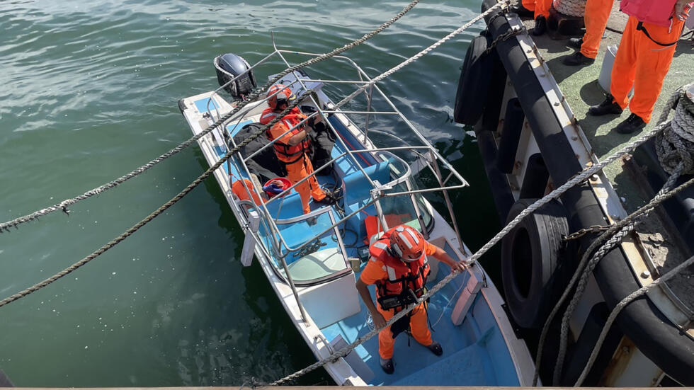 A Taiwan Coast Guard handout photo shows mariners seizing the boat Ruan used © Handout / TAIWAN COAST GUARD/AFP/File