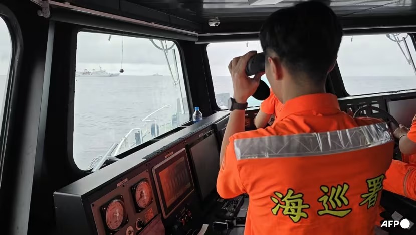 A picture of the Taiwan Coast Guard monitoring a Chinese military ship as it sails a few miles north of Pengjia Island, off the coast of northern Taiwan. (AFP)