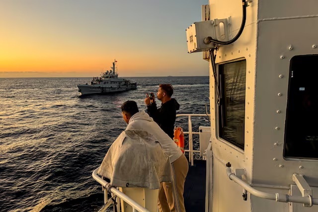 Philippine Coast Guard personnel documents a Chinese Coast Guard vessel shadowing the Philippine's resupply mission at Second Thomas Shoal in the South China Sea, March 5, 2024. REUTERS/Adrian Portugal/File Photo