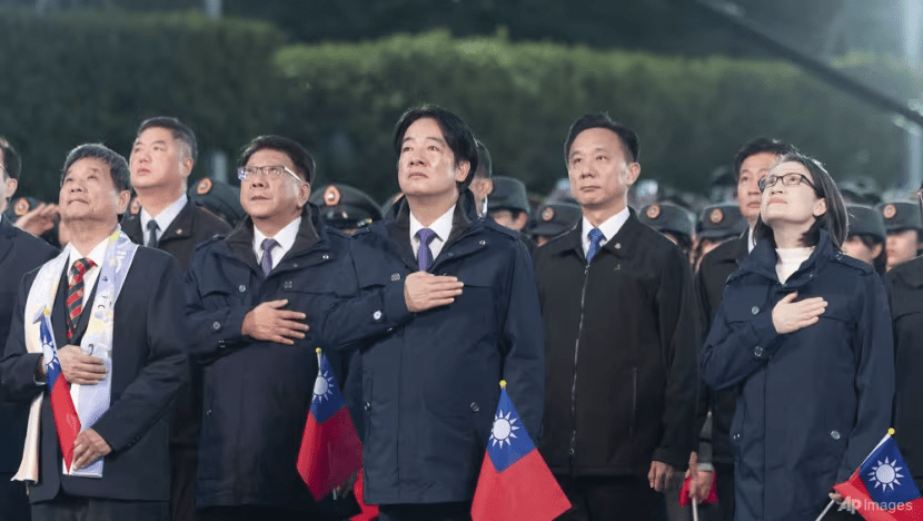 Taiwan's President Lai Ching-te (centre) attends a flag raising ceremony in Taipei on Jan 1, 2025. (Photo: Taiwan Presidential Office via AP)