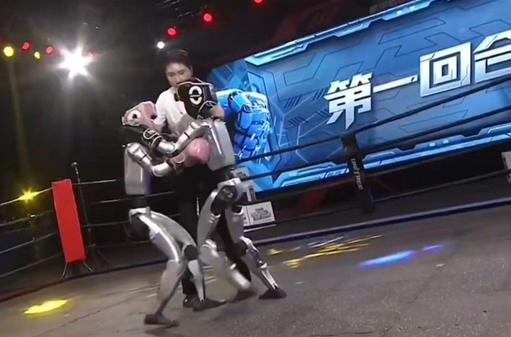 Four teams of humanoid robots battled in the historic event, executing programmed combat techniques to disable opponents in a specially designed arena.