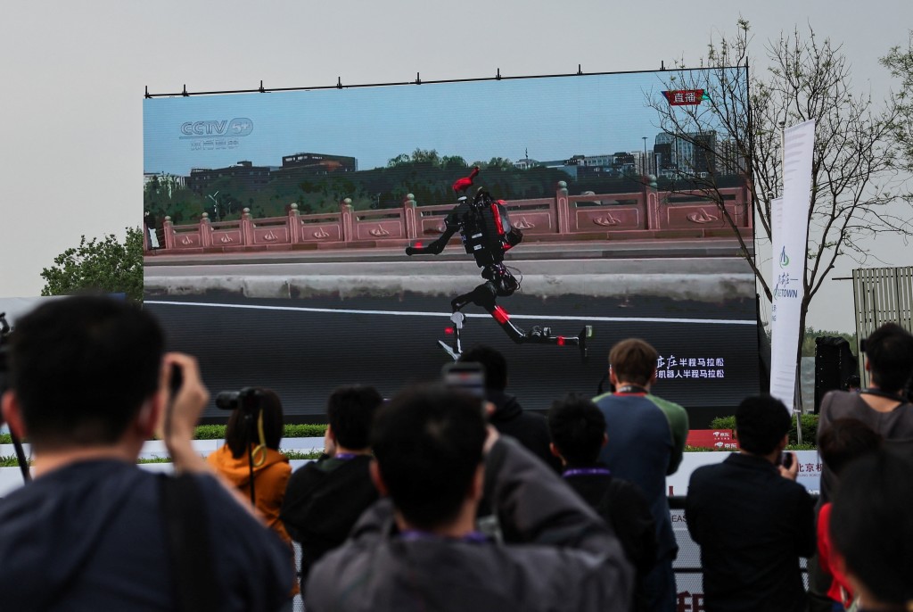Dozens of Chinese-made humanoid robots showed off their fast-improving athleticism as they whizzed past human runners in a half-marathon race in Beijing on Sunday, having lagged far behind a year earlier.