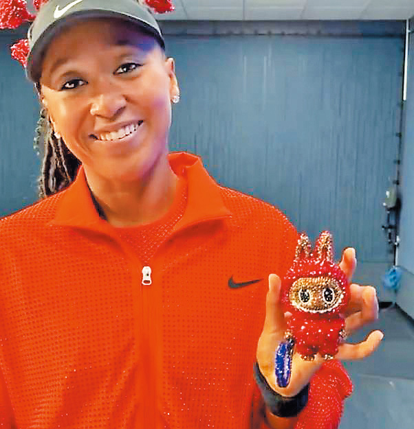 Osaka, known for her dashing on-court fashion, brought a different Labubu doll to each match of the tournament. One was covered in red rhinestones and held a blue tennis racket, almost identical to Osaka's own outfit on the day's match.