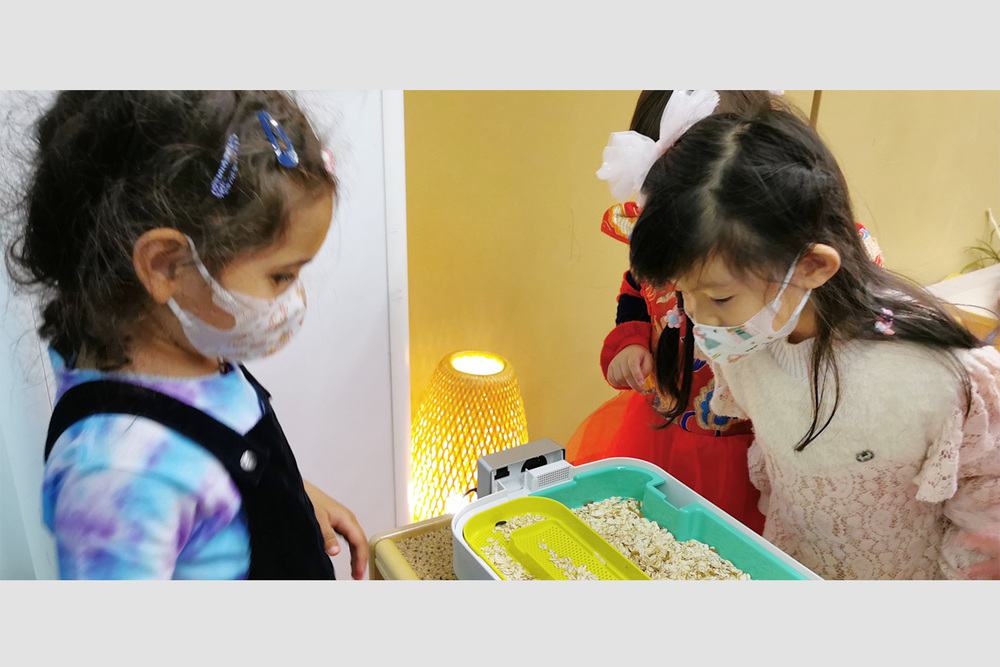 K1 students learn to upcycle food waste and observe the life stage of mealworms.