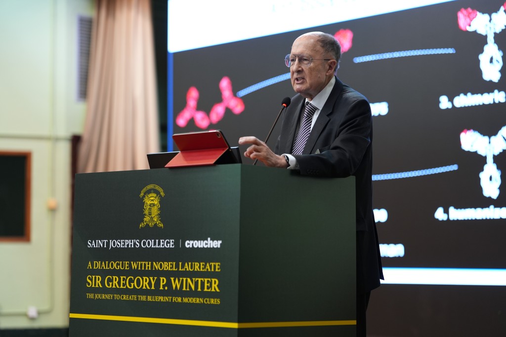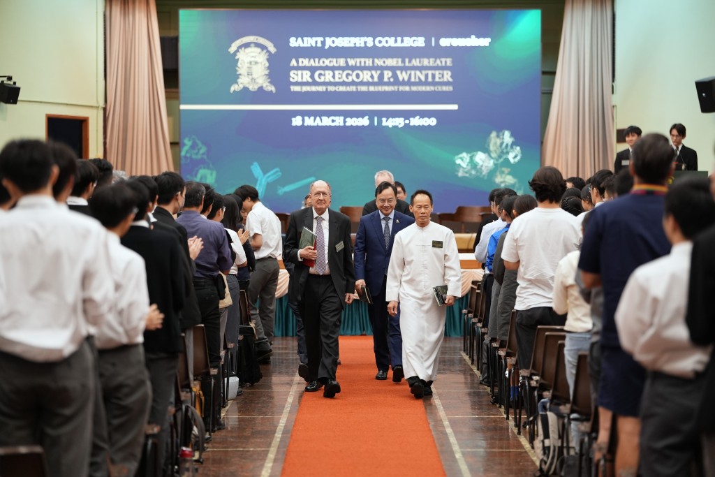 St. Joseph's College and The Croucher Foundation co-hosted a landmark educational forum on Wednesday (Mar 18), welcoming Nobel Laureate Gregory P. Winter. The event, initiated by the College alumnus Dennis Lo Yuk-ming, Vice-Chancellor of The Chinese University of Hong Kong, drew over 400 students and educators from Hong Kong and abroad.