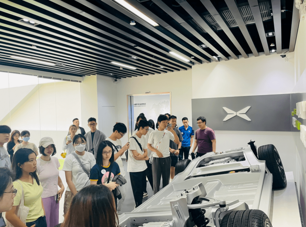 Students had the chance to see and touch the aluminium-made lightweight chassis of XPeng EV.