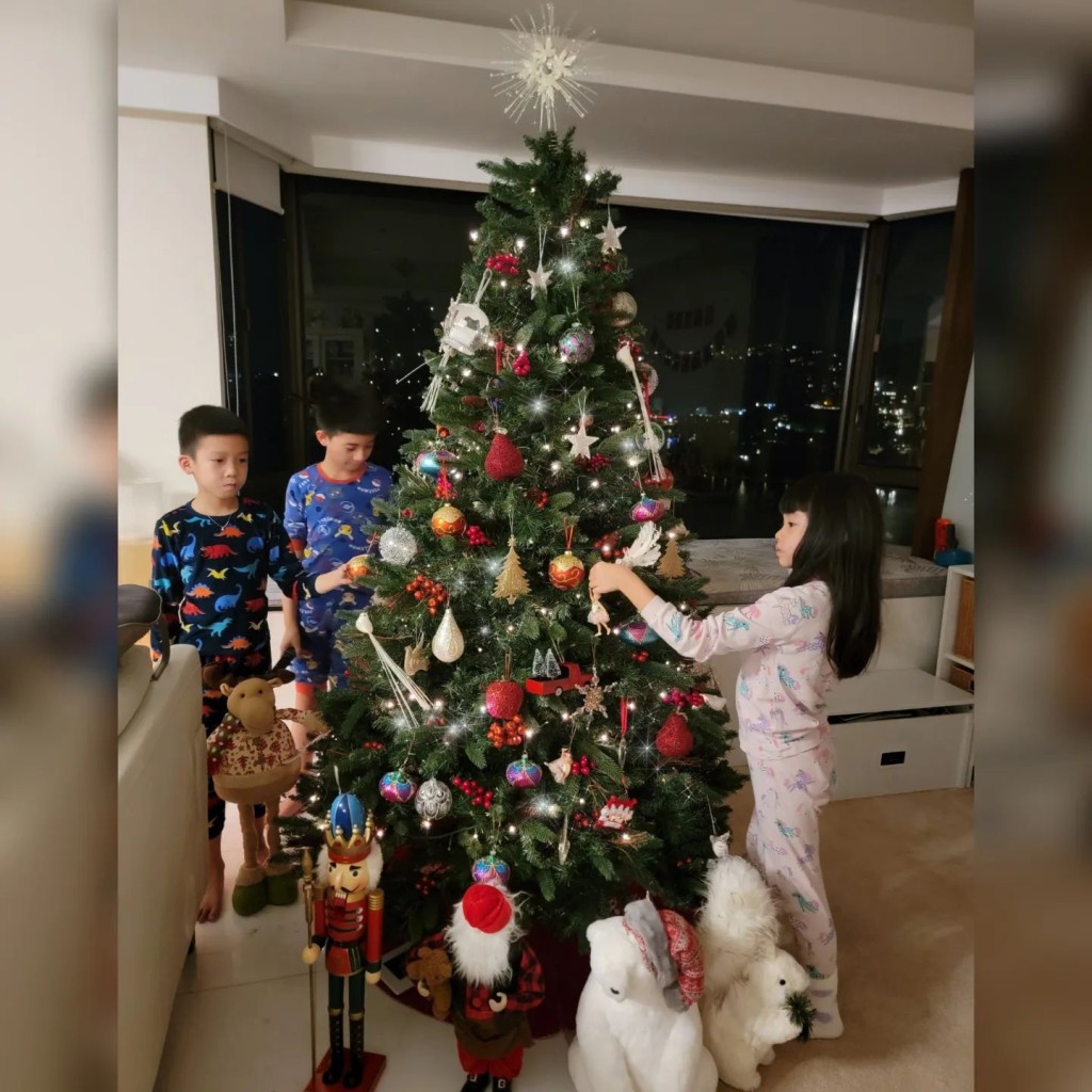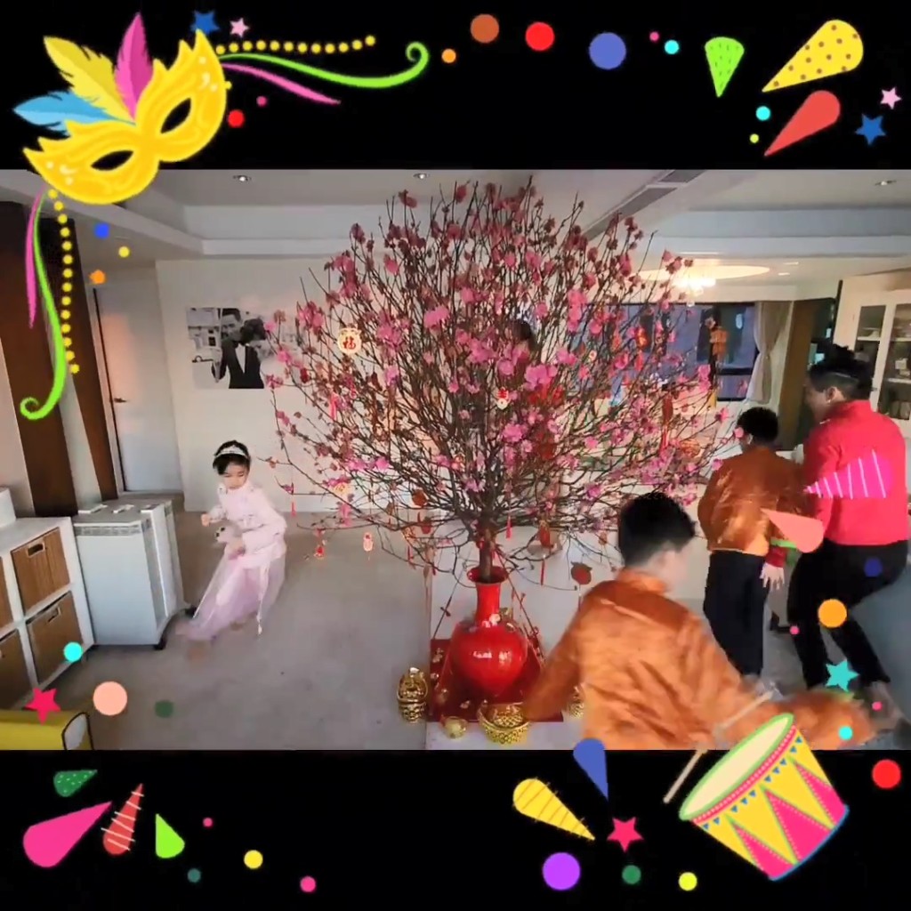 Their living space is adorned with personal touches, including peach blossom arrangements, Christmas trees, and birthday decorations for family celebrations.