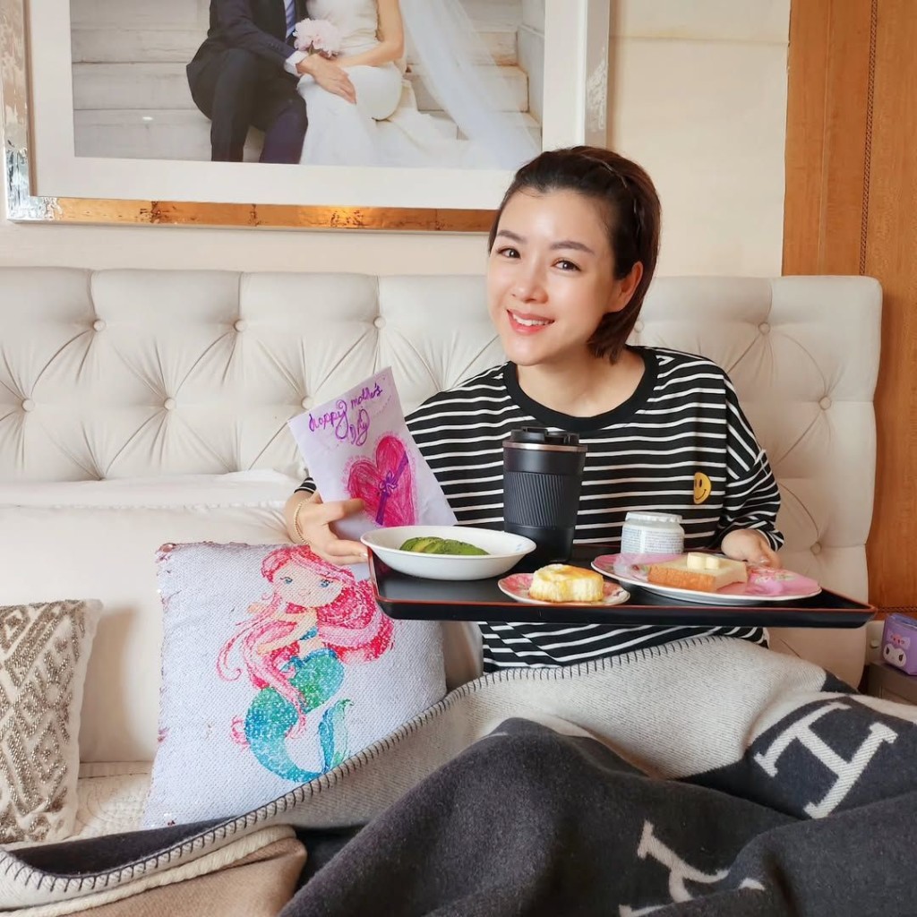 Aimee once shared a glimpse of their bedroom, where she enjoyed breakfast in bed surrounded by plush pillows and an Hermès blanket.
