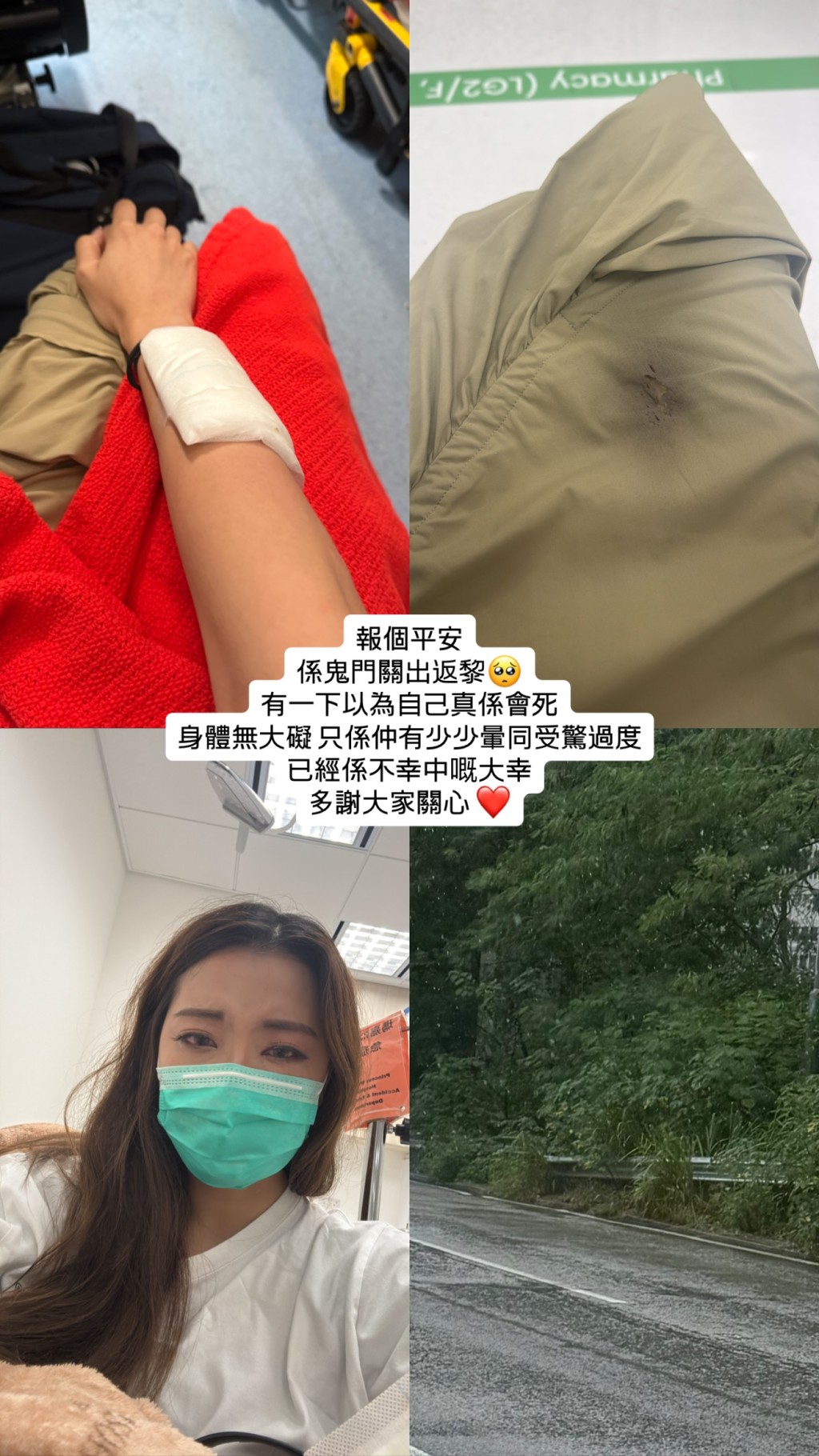 TVB's current affairs program "Scoop" host and former Miss Hong Kong 2024 contestant Kanis Yu, 27, has revealed details of a serious car accident that occurred during Typhoon Signal No. 8, leaving her with severe arm injuries and her vehicle extensively damaged.
