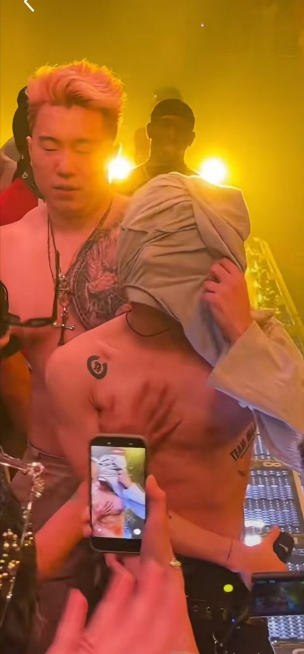 Wang handled the situation with composure and humor, playfully pulling his shirt over his head as the crowd erupted in cheers.