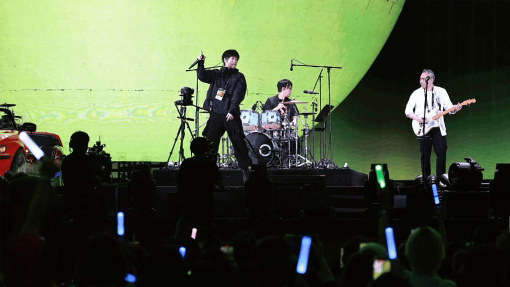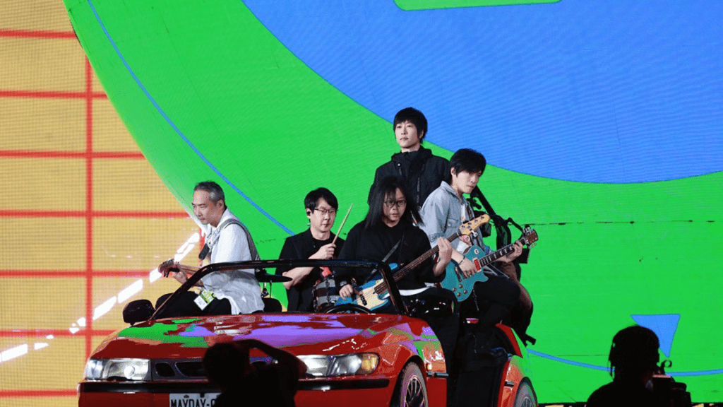 On stage, Mayday leaned into that sense of closeness. The band moved across the venue on a mobile stage during performances of “Cheers” and “Loneliness Terminator,” waving and singing along with fans. Ashin paused to thank the audience, while his bandmates greeted the crowd in Cantonese and traded jokes, drawing laughter across the stadium.