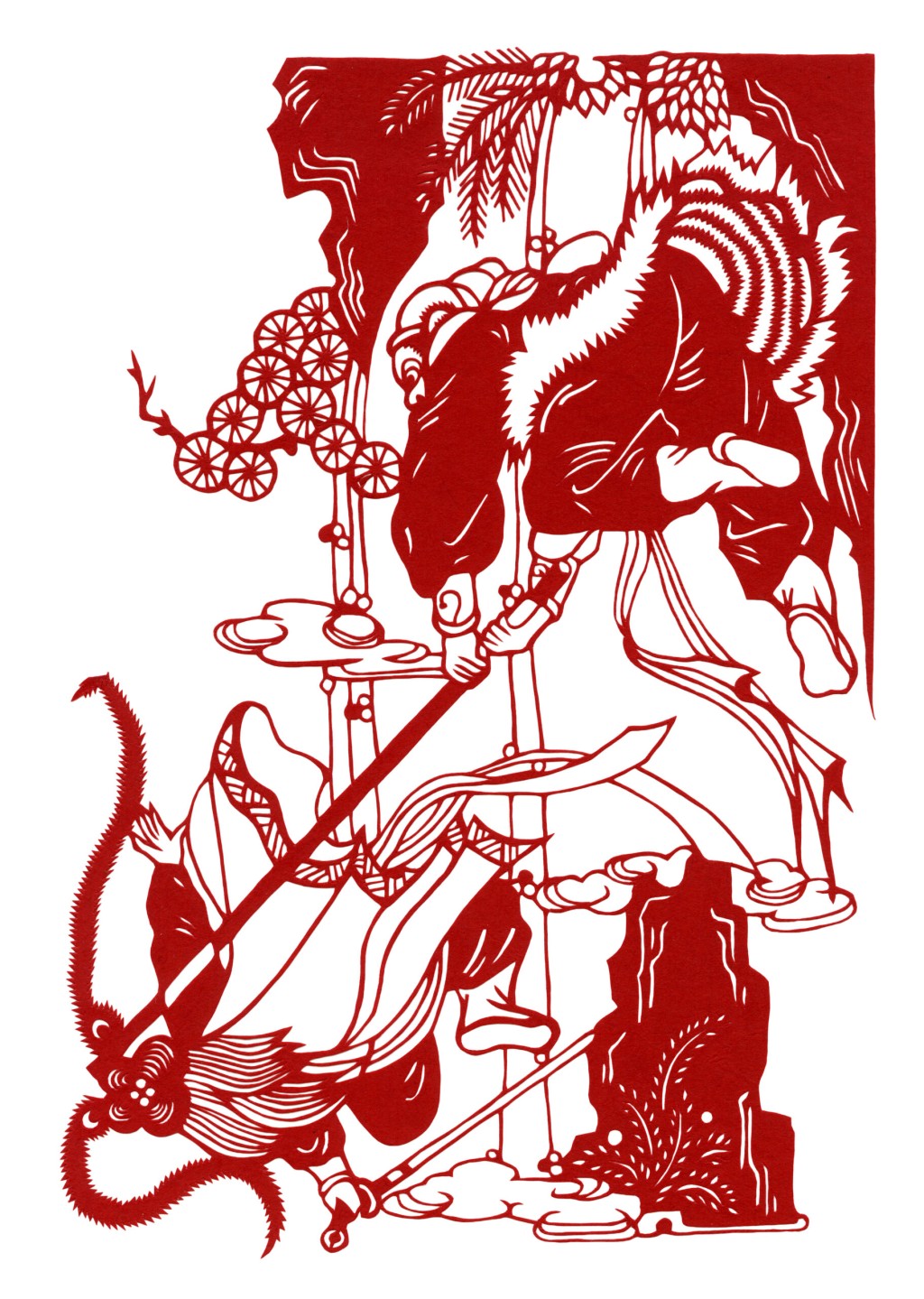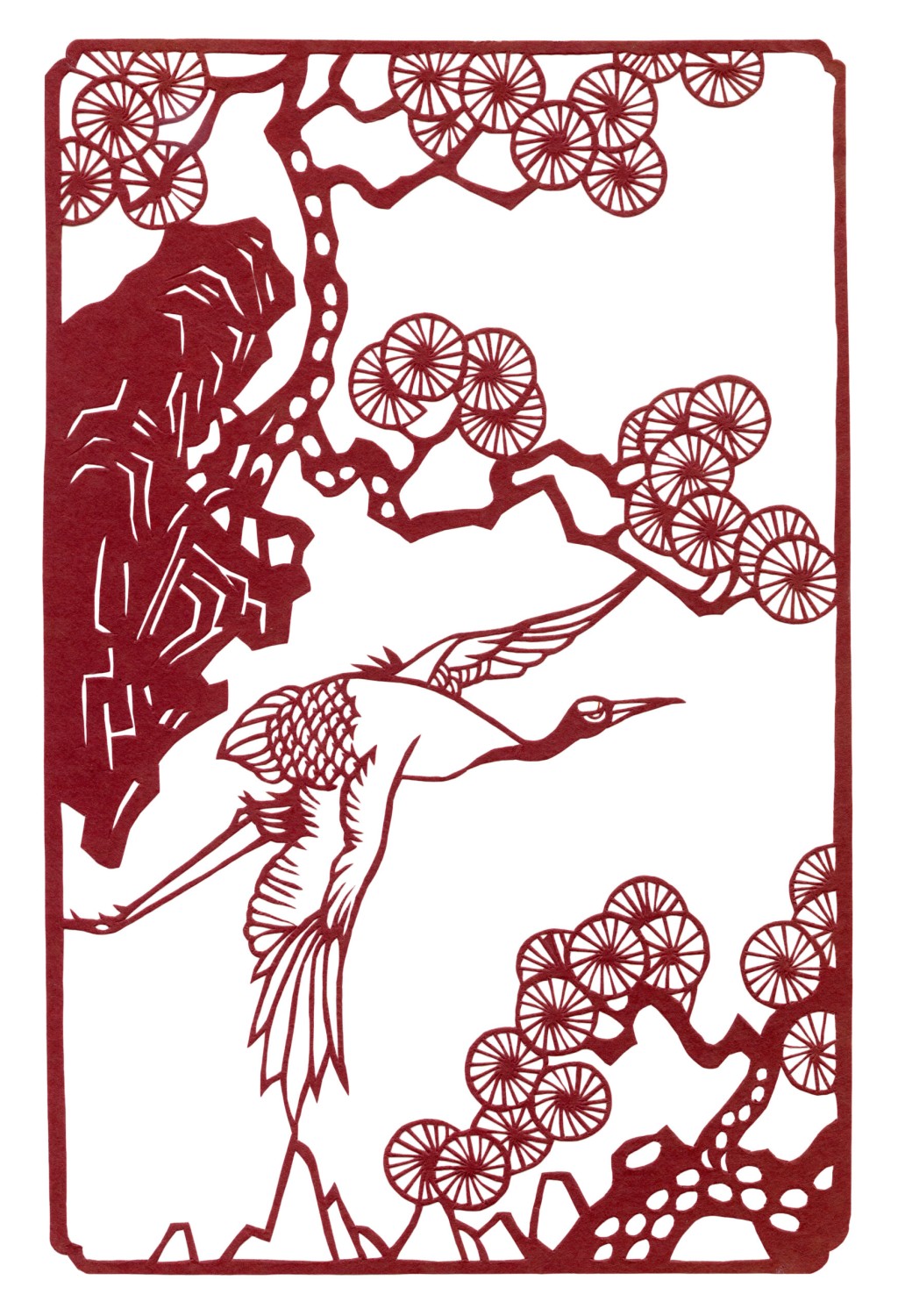 For example, a pine tree in combination with a crane can symbolise longevity, representing wishes for health in old age and a lasting marriage. Chinese paper cuttings also tell stories, depicting scenes from well-known tales or presenting instructive narratives.
