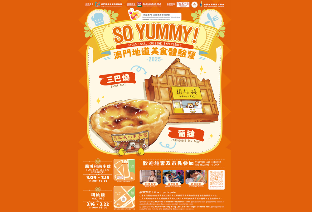 Dive into the delightful world of Macao’s gastronomy with the “So Yummy! Macao Local Cuisine Experience”. This unique event, organized by two local shops, invites participants to craft two beloved treats: the Portuguese egg tart and the Samba-yaki egg waffle. From now until the 15th, join the food-making experience at Fong Seng Lei Lai Lembranças, and from March 16th to 22nd, head to Hamo Yaki for the Samba-yaki egg waffle session.