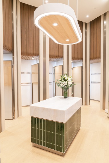 The overall aesthetic of this fresh, refined space includes natural color tones and materials applied throughout, providing a welcoming, bright and energetic space for shoppers. The new shop-front design reinterprets lululemon’s fabric pattern as ocean waves, creating a three-dimensional façade that conveys a sense of fluidity and movement — conceptually marrying the brand’s innovative textile technology with Hong Kong’s iconic Victoria Harbour.