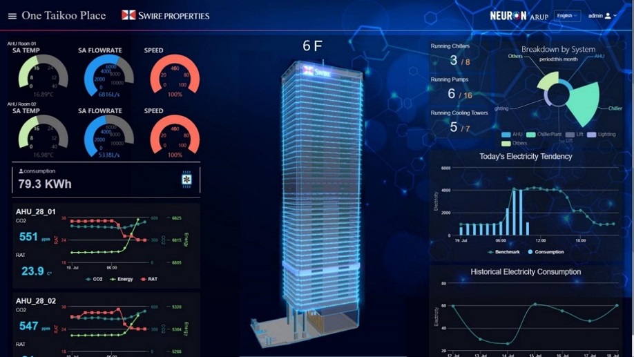 Tested and implemented for the first time at Swire Properties’ newest triple Grade-A office tower, One Taikoo Place, the Arup-developed technology is a pioneering AI and Internet of Things (IoT)-enabled central analytic platform that serves as the “digital brain” of the building.