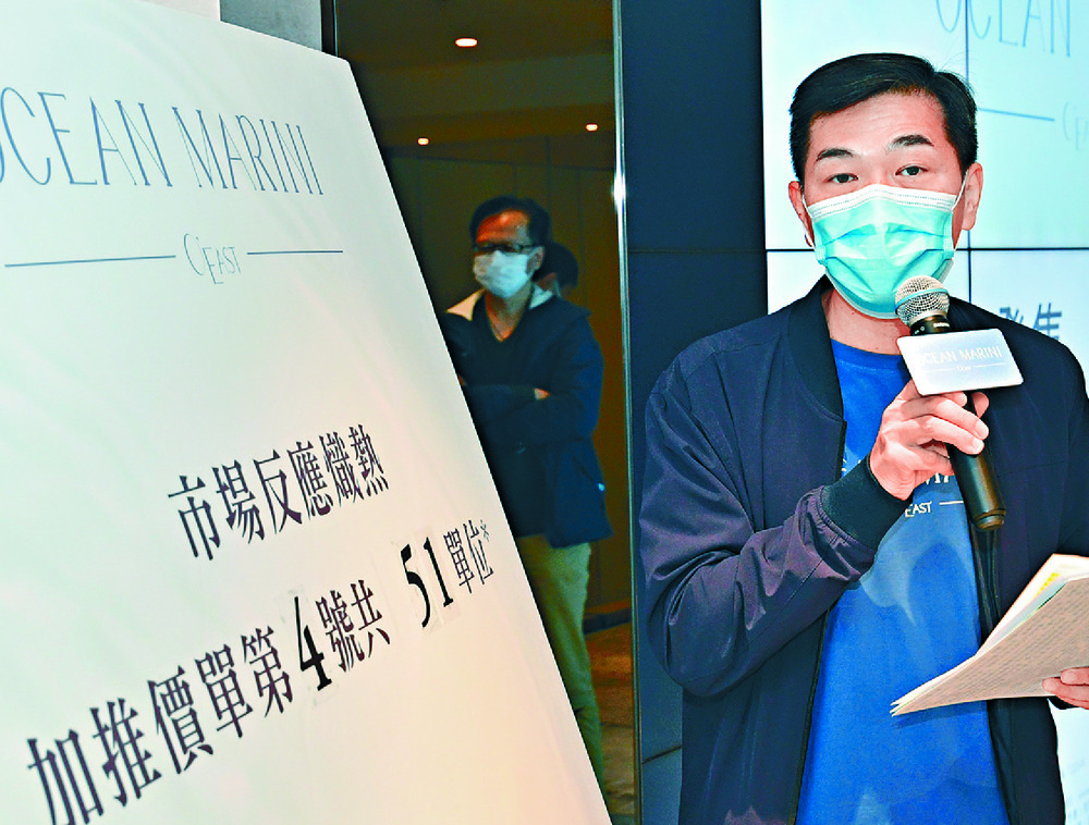 Wheelock Properties released 51 flats in the fourth price list of Ocean Marini at Lohas Park, which are offered at an average HK$15,988 per sq ft, 8.8 percent higher than that of the first batch.