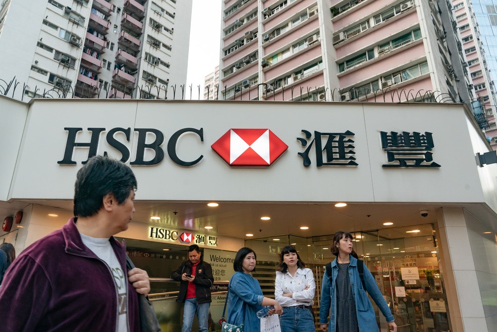 Pedestrians stand outside an HSBC Holdings Plc bank branch in Hong Kong. (Reuters)