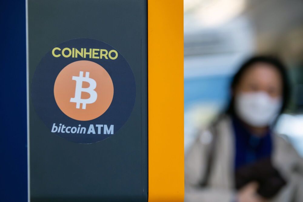 Signage on a Bitcoin ATM, operated by Coinhero, in Hong Kong. (Bloomberg)