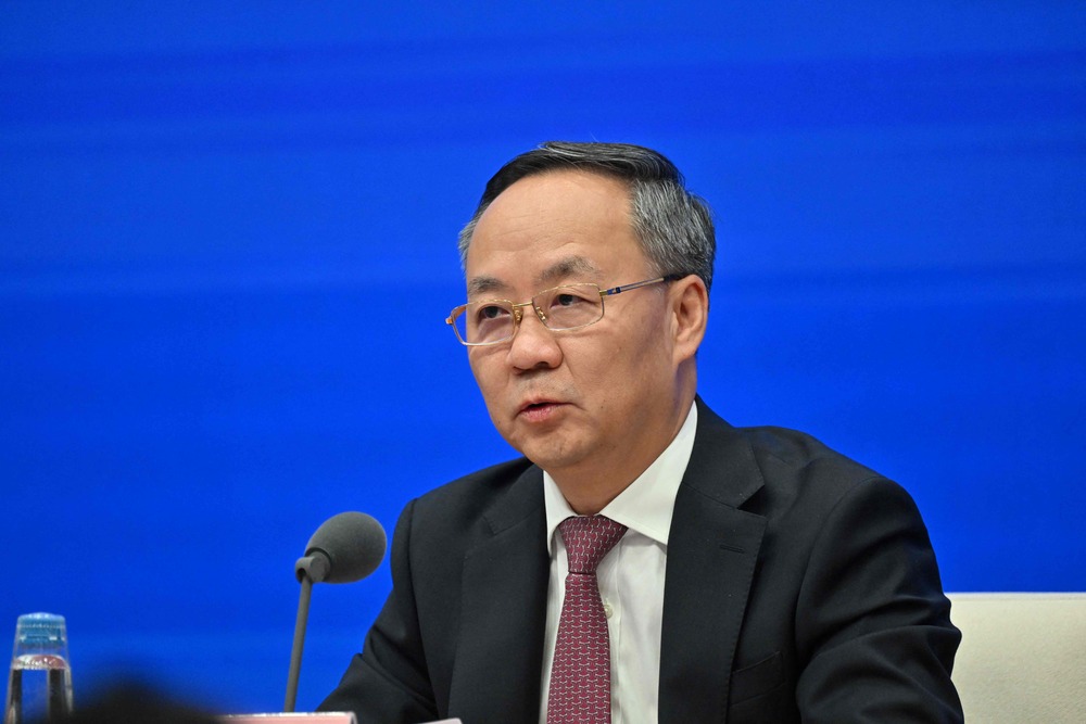Li Yunze, Minister of the National Financial Regulatory Administration, speaks during press conference at the China? State Council Information office in Beijing on September 24, 2024. AFP