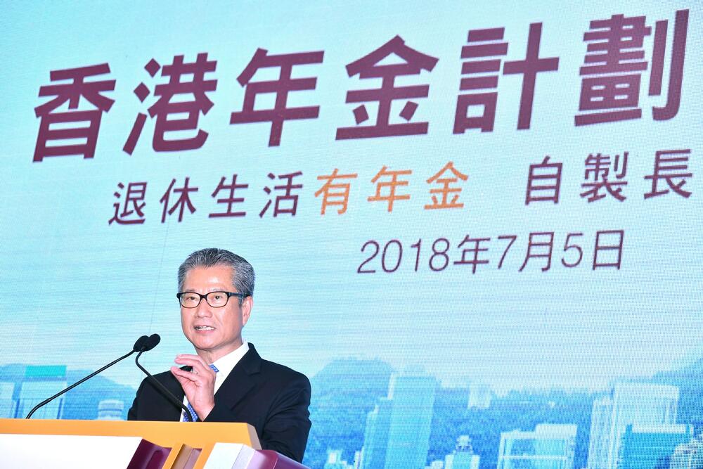 GOVERNMENT-BACKED: Financial Secretary Paul Chan at the launch of the HKMA Annuity plan.
