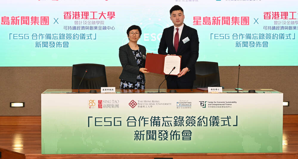 Under the MoU, Sing Tao will leverage its media resources while the Center for Economic Sustainability and Entrepreneurial Finance at PolyU will provide academic expertise.