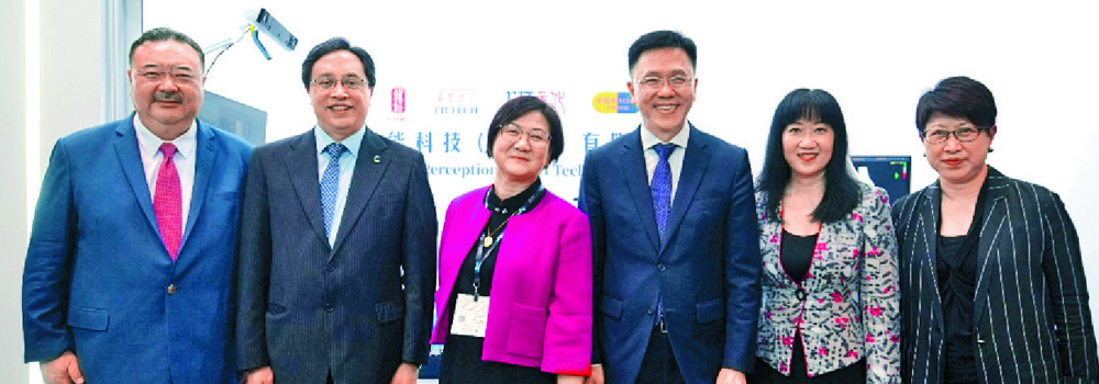From left, Yuanhua chief scientist Max Meng, Cyberport chairman Simon Chan, Yuanhua chairwoman Meng Liaili, Secretary for Innovation, Technology and Industry Sun Dong, and Hong Kong Trade Development Council's executive director Margaret Fong and dep