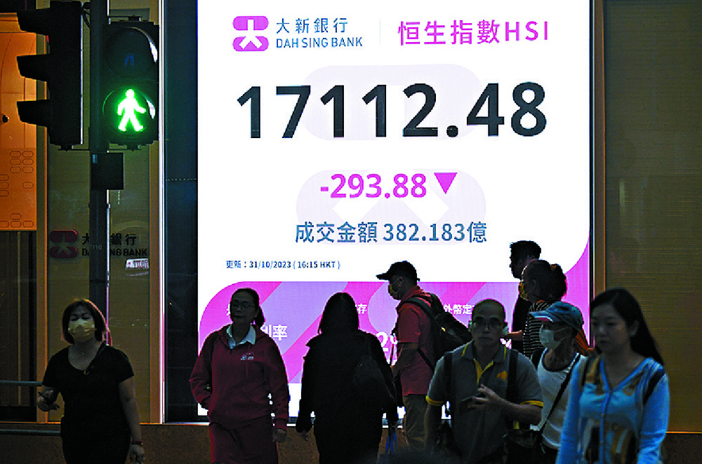 Staff reporter and agenciesThe Hang Seng Index was down 293 points to close at 17,112 points yesterday as official data showed that China's manufacturing activity unexpectedly lessened in October. The Hang Seng Tech Index fell by 2.5 percent, with Tencent (0700) down 2.1 percent.