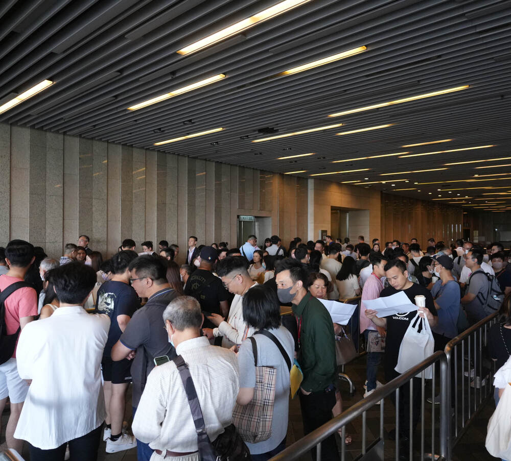 Buyers queue for flats at The Yoho Hub II. Sing Tao