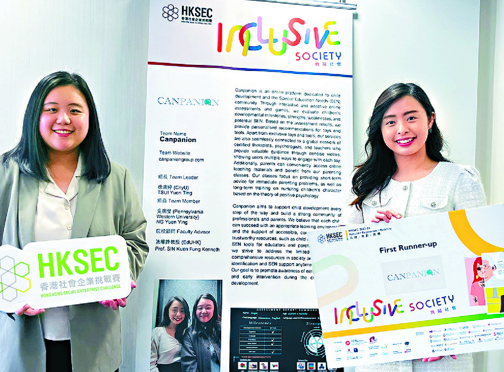 Christine Tsui Yuen-ting and Queenie Ng Yuen-ying founded Canpanion in 2023 to help alleviate the shortage of resources for SEN children and developed an online gamified assessment that can identify autism spectrum disorder, attention-deficit/hyperactivity disorder and specific learning difficulties.