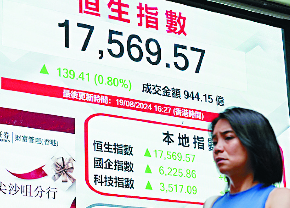 Hong Kong's Hang Seng Index rose 139 points, or 0.8 percent, to close at 17,569 points yesterday, with tech stocks seeing a rally. JD.com (9618) rose 3.9 percent while its healthcare unit JD Health (6618) jumped 7.9 percent, the best performer among blue chips.