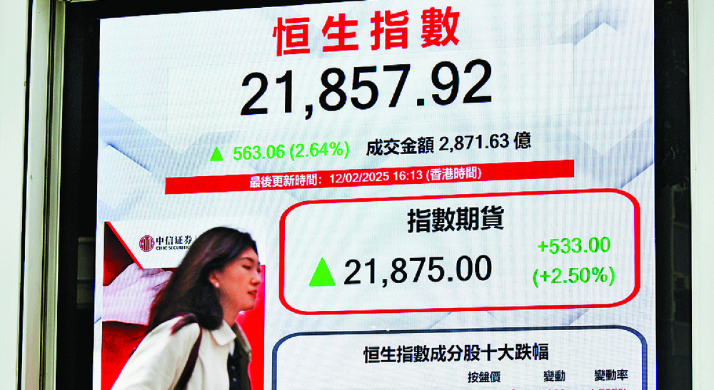 Staff reporter and agenciesThe benchmark Hang Seng Index closed at 21,857, up 2.64 percent. The market turnover was HK$287.16 billion, the highest since October 10 last year.