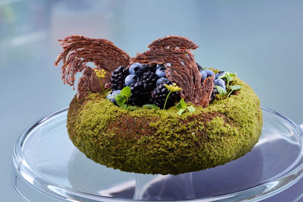 A lush, plant-based homage to the forest floor, it layers Valrhona’s velvety Manjari chocolate with tangy cassis jelly and a mischievous almond crunch. Topped with Uji matcha and pistachio streusel, it’s a dessert that doesn’t just satisfy—it transports.