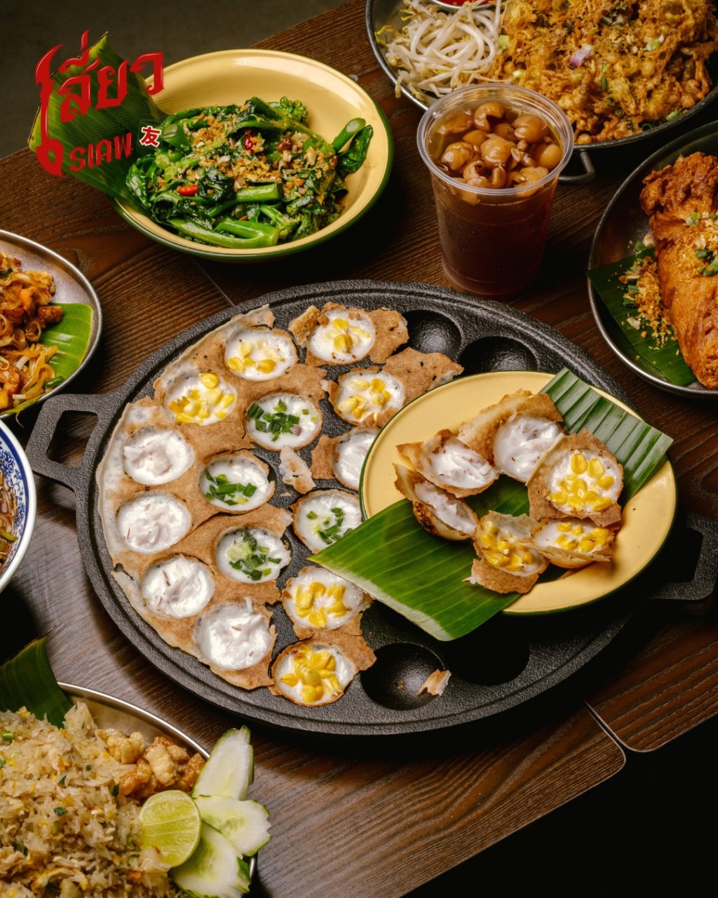 Its menu includes street-style favorites such as fried rice, noodles and grilled dishes. A highlight is the Thai minced pork or wagyu beef with fried egg and basil rice, stir-fried with garlic and chili for a bold and aromatic flavor. The Thai coconut pancake dessert is another favorite, featuring a soft interior and lightly crisp base.