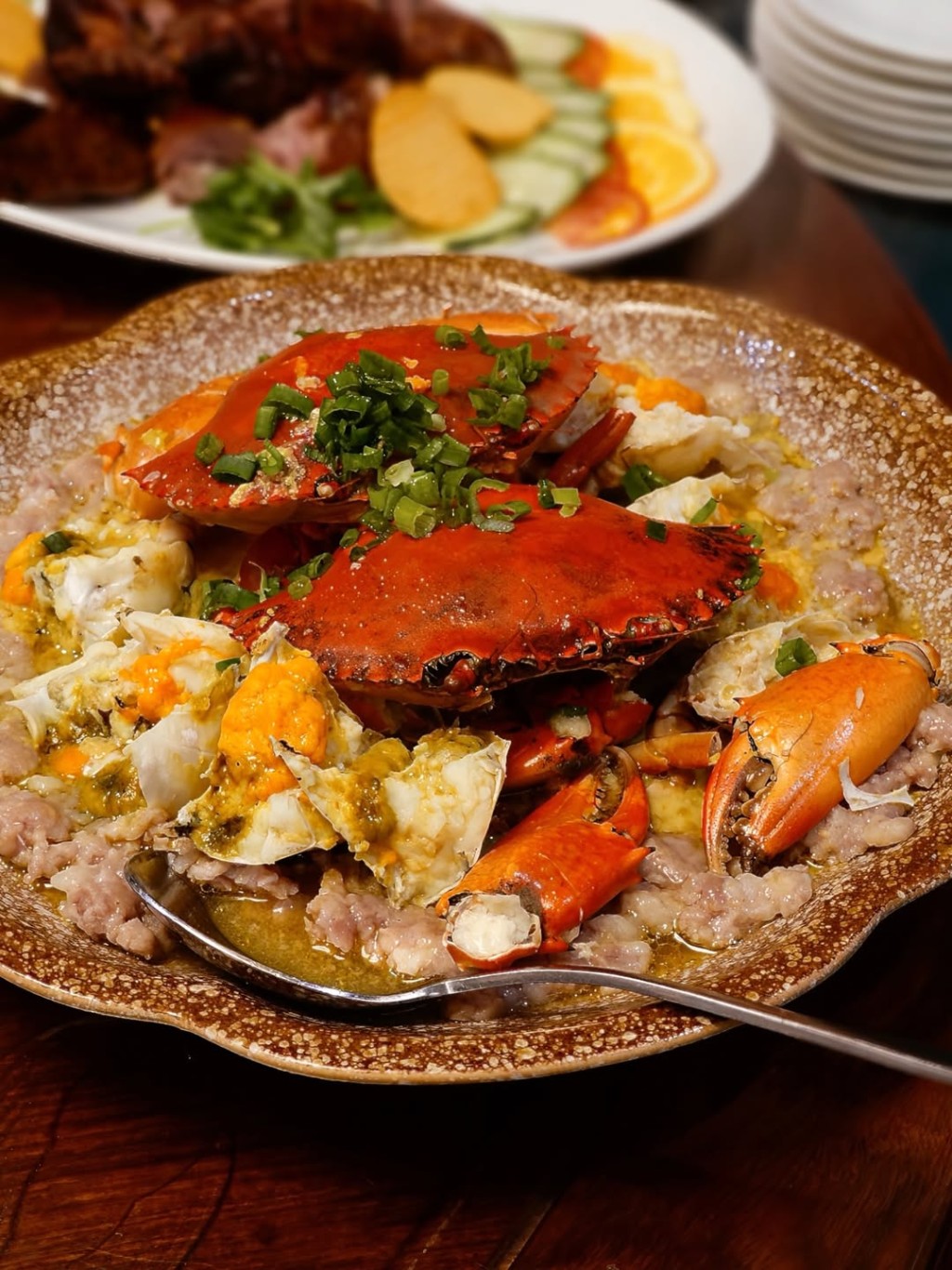 One of the restaurant’s signature dishes is steamed pork patty with mud crab, where the rich aroma of crab roe blends with minced pork that absorbs the seafood’s natural juices. Another popular dish, fried omelette with dried radish and ground pork, offers a balance of crispy edges and savory sweetness.