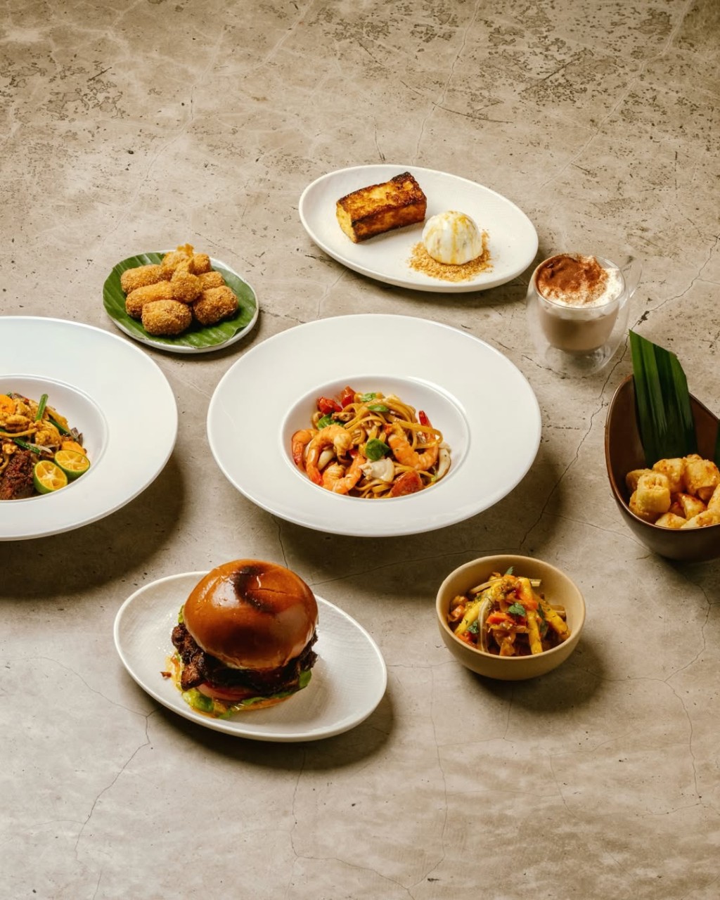 The restaurant’s signature lobster laksa features a broth rich with shrimp, prawn roe and coconut milk, layered with aromatic spices. Another standout is the oatmeal fried chicken, inspired by Singapore’s well-known oatmeal prawn dish and offering a crunchy texture with fragrant seasoning.