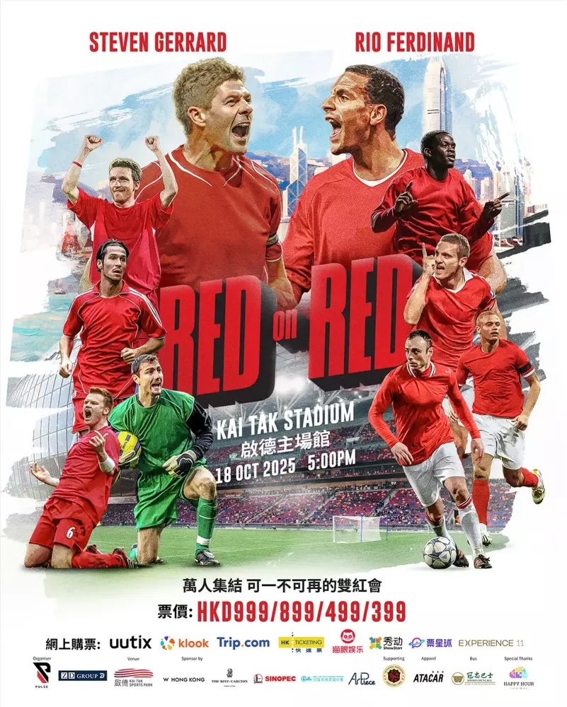 The full lineup for the much-anticipated "RED on RED: Gerrard 11 vs Rio 11" legends match in Hong Kong has been revealed, with tickets set to go on general sale this Wednesday after priority allocations sold out within hours.