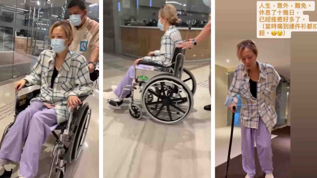 Sammi Cheng hospitalized with back injury, requires wheelchair and crutches