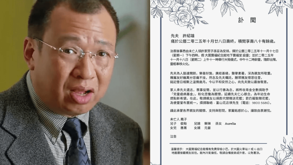 Benz Hui, 76, passes away; TVB veteran from prominent family