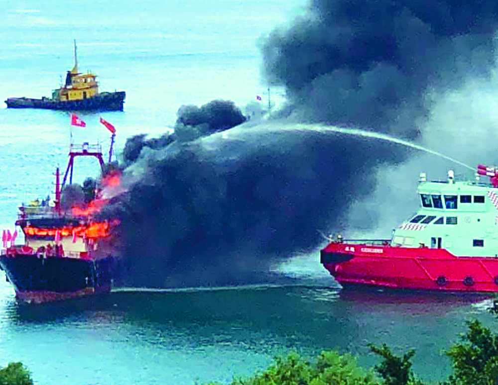 500-meter fire line visible across Yuen Long's Cheung Ngau Shan as bushfire rages