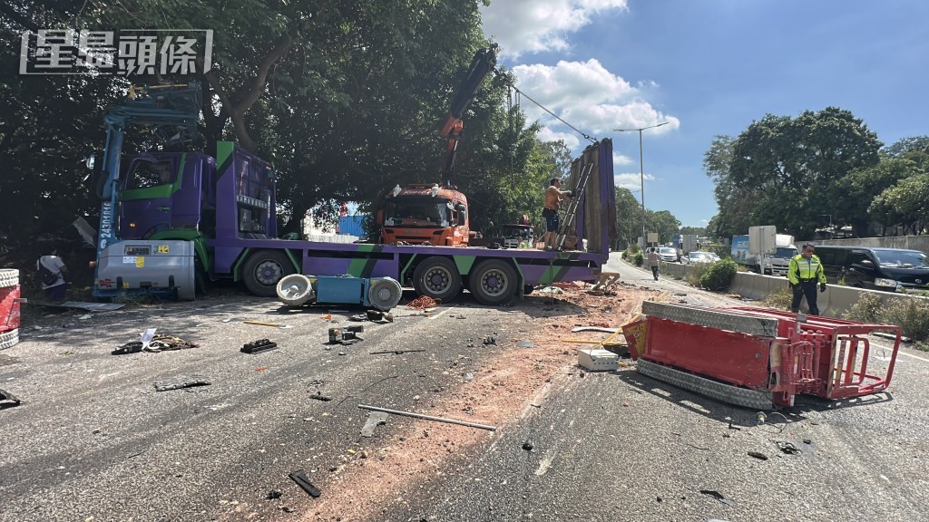 The impact left the dump truck's front end severely damaged, with both truck drivers injured and requiring hospitalization. Authorities were forced to close all Yuen Long-bound lanes, creating a traffic congestion stretching to near Kam Tsin Village on Fanling Highway by afternoon.