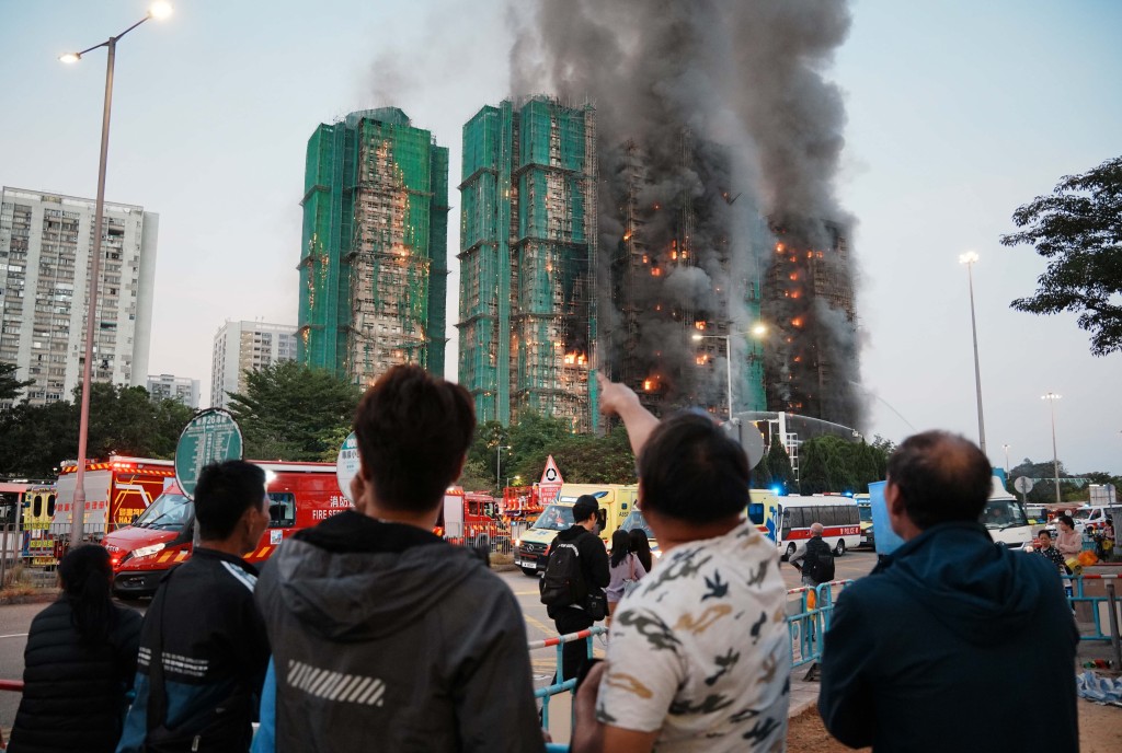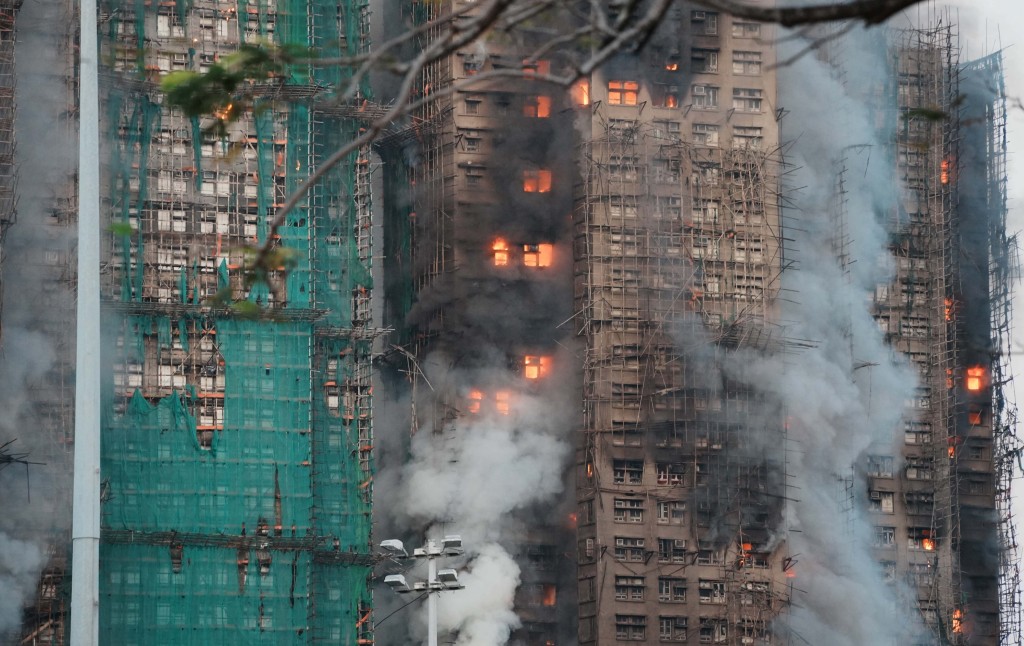 (Video) Four dead, seven injured as Tai Po scaffolding fire upgrades to No. 5 alarm