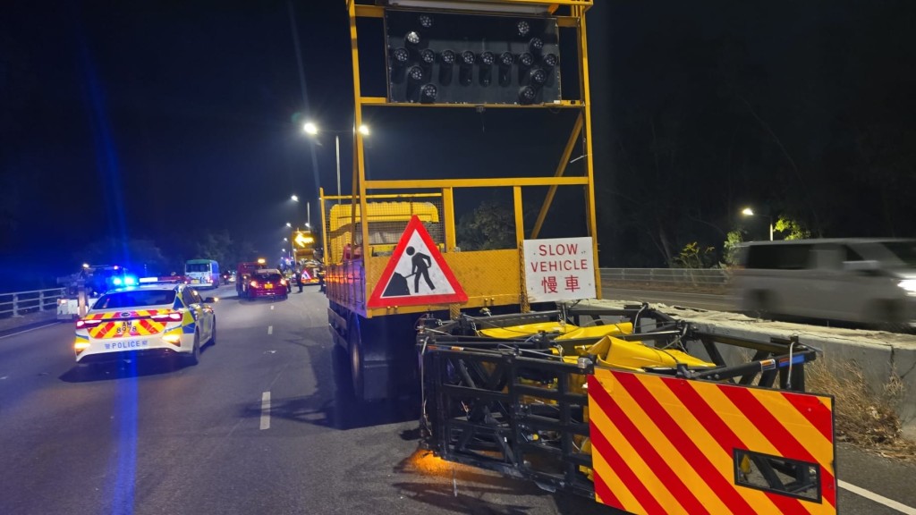 (Video) 2 injured after car crashes into truck in Tuen Mun