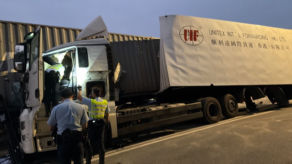 A truck driver was left semi-conscious after a suspected lane-crossing crash involving a tractor unit in Tin Shui Wai early Tuesday morning.