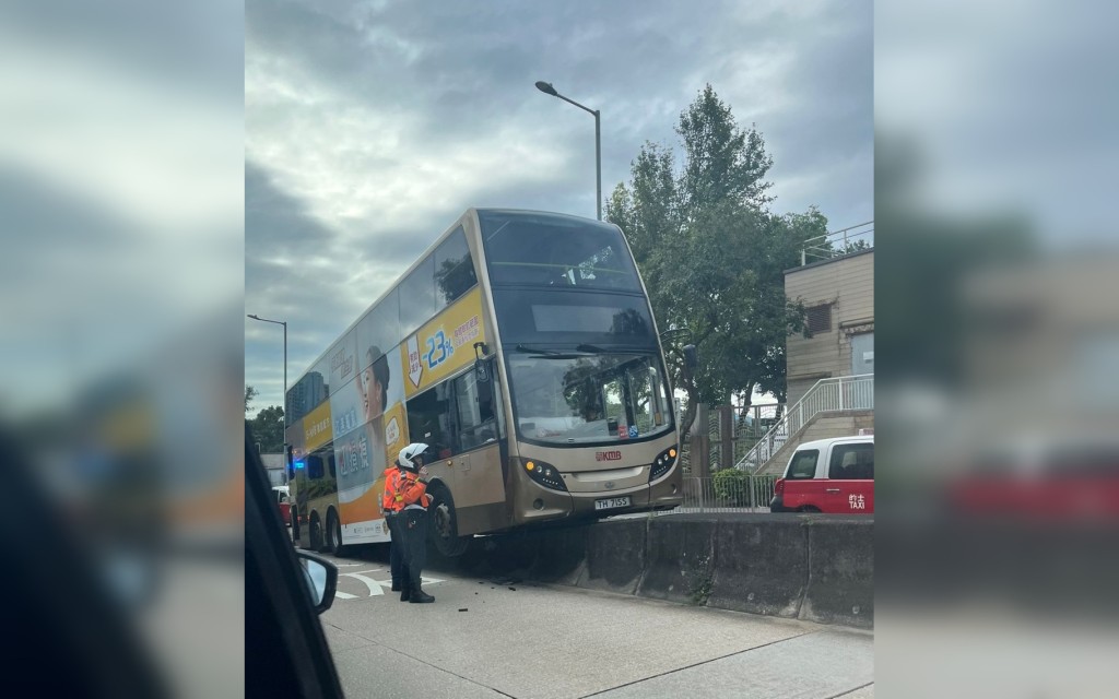KMB bus mounts road divider in Choi Hung, no injuries reported