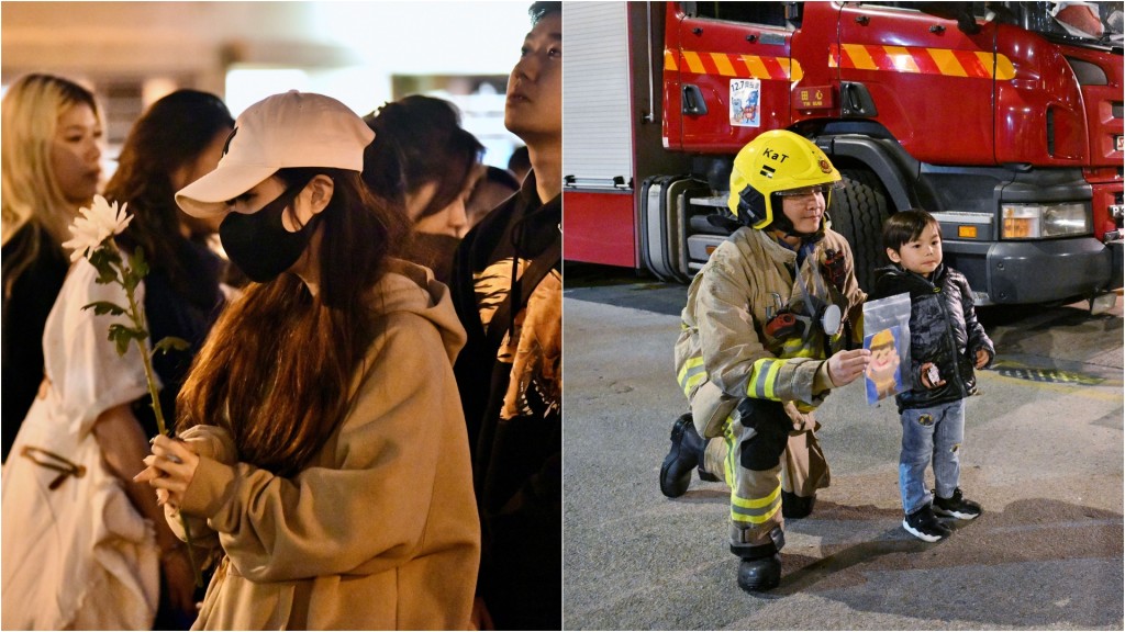 Mourners lay white flowers as Tai Po fire death toll stands at 128