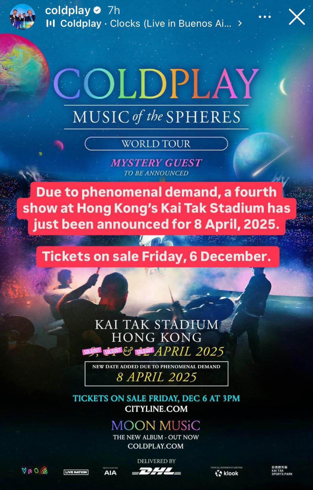 Second chance to buy hot tickets as Coldplay announce fourth show