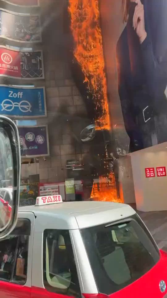 (Video) Billboard fire at Lee Theatre Plaza prompts road closures in Causeway Bay
